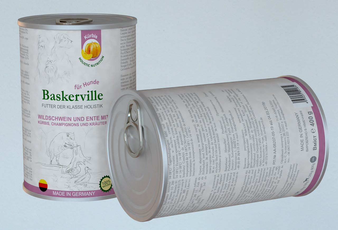 Вологий корм для собак Baskerville Holistic кабан качка гарбуз зелень 400г